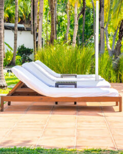 - Daybeds, chaise lounges, umbrellas and side tables ideal for pool decks and patios